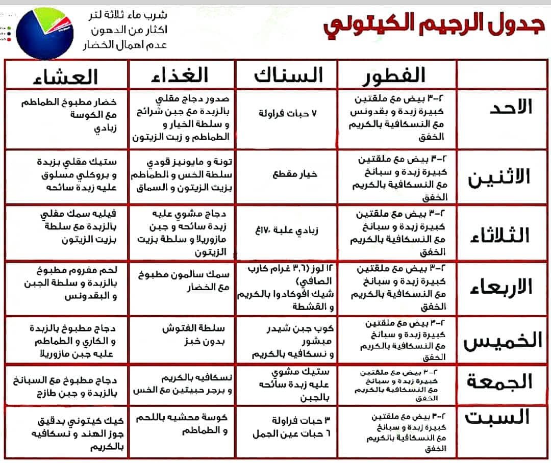 - جدول نظام غذائي صحي لتخفيف الوزن